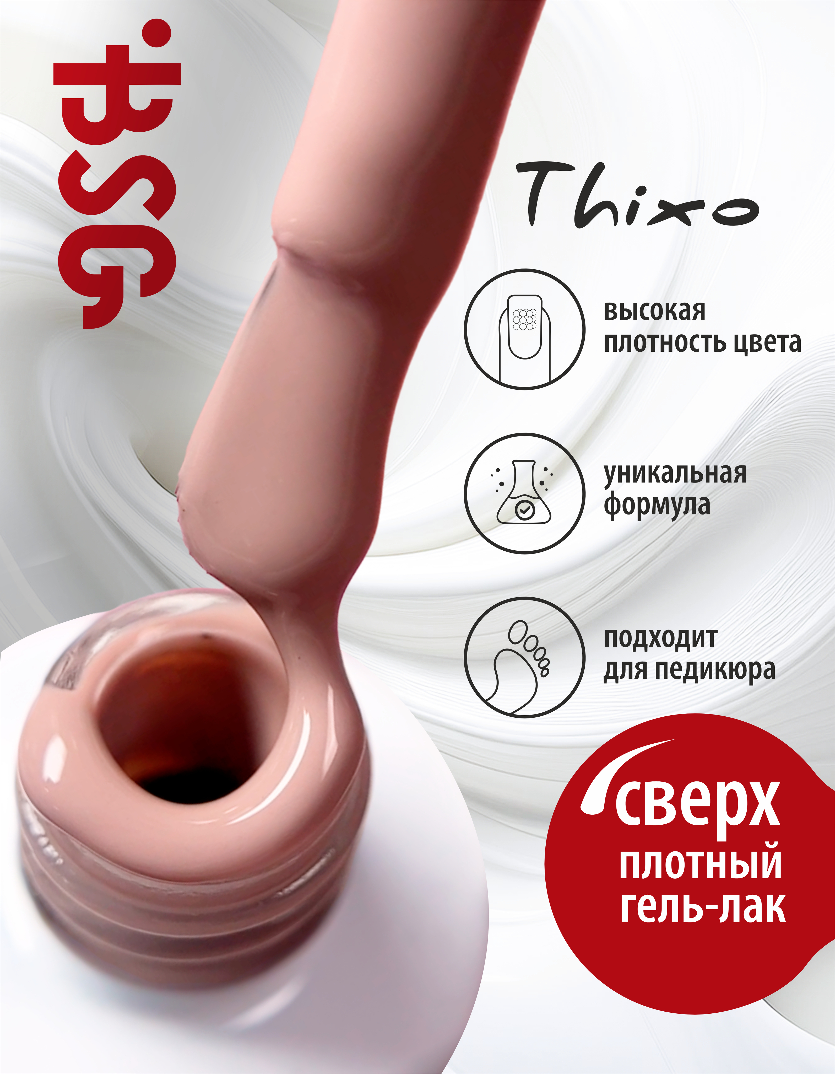 Гель-лак "Тиксо" сверхплотный. Эластичный высокопигментированный гель-лак для покрытия в один слой. Идеальное нанесение цветного покрытия по липкому или безлипкому слою на любую подложку!