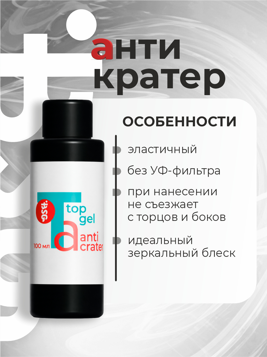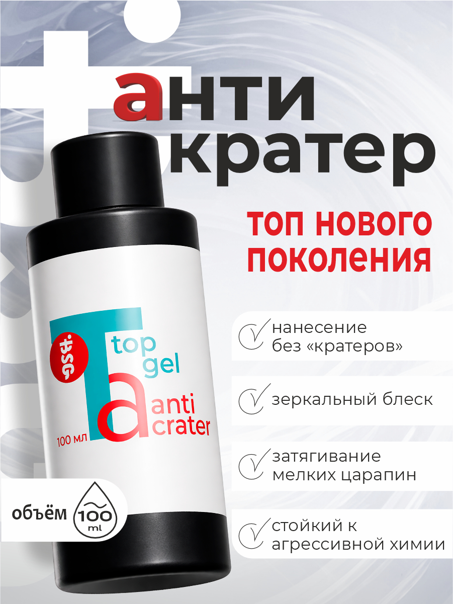Топ "Антикратер" - уникальный продукт, сочетающий в себе свойства "незатирающегося" топа и идеального по нанесению геля, который на любую липкость ложится без "кратеров".
