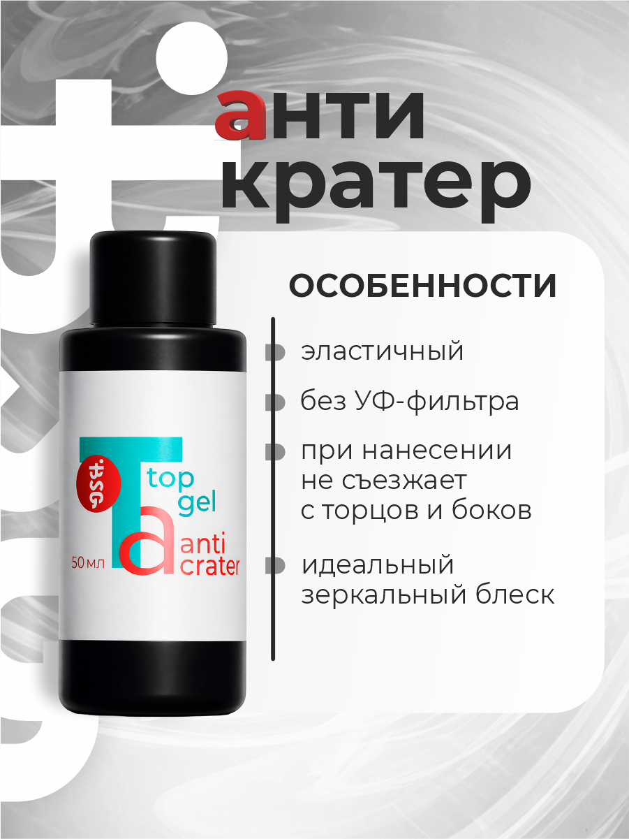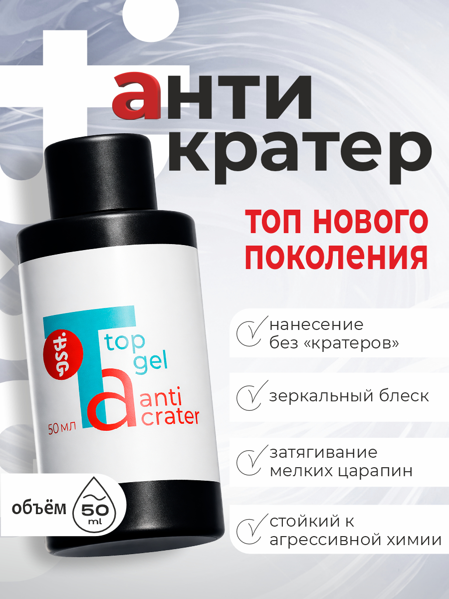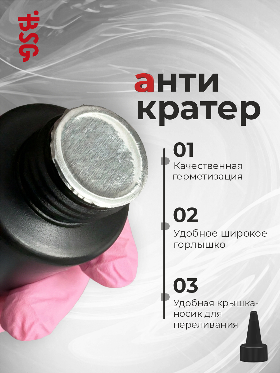 BSG Завершающий топ для ногтей Anticrater глянцевый, без липкого слоя (50 мл)