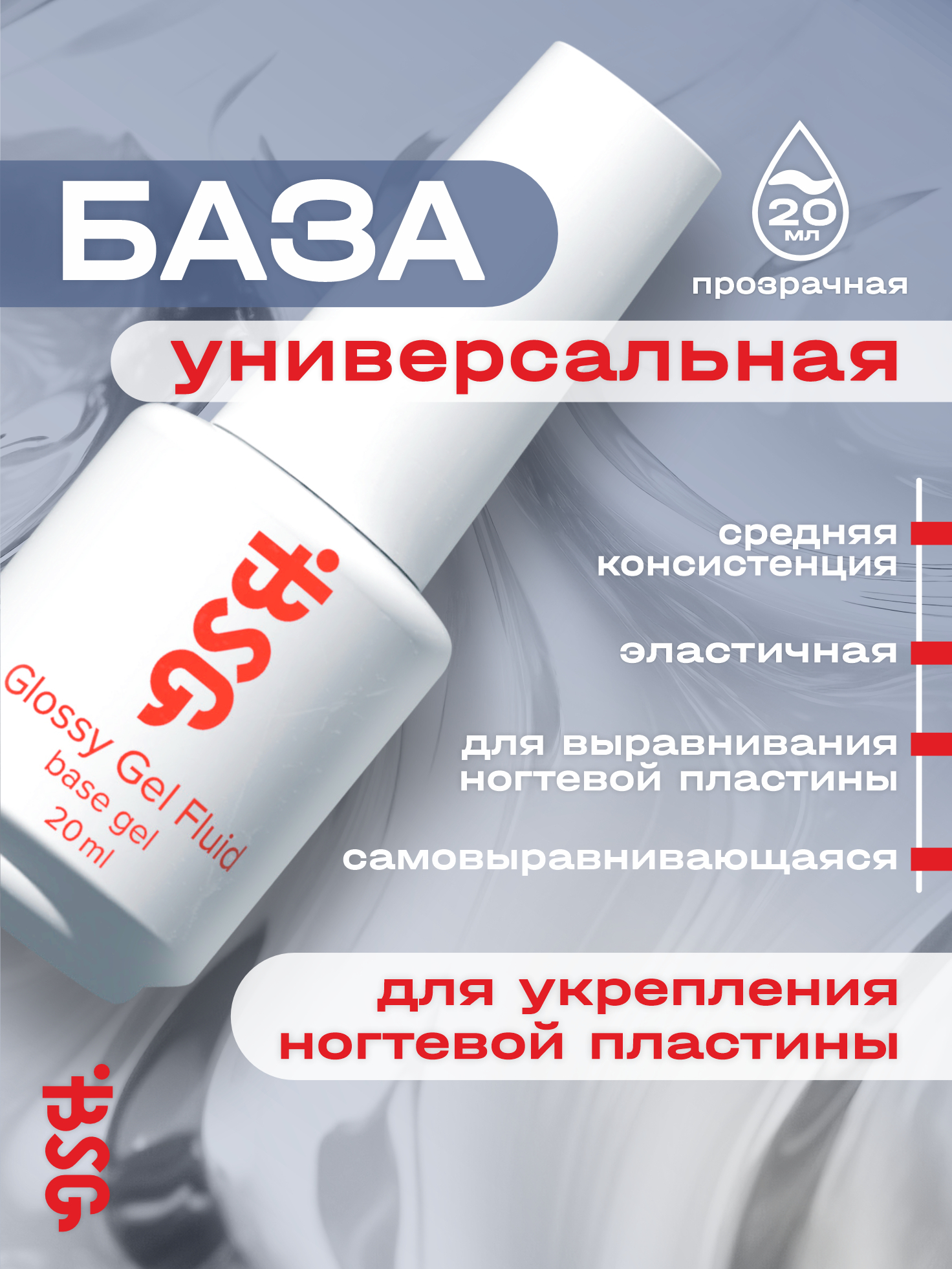 Glossy Gel FLUID - УНИВЕРСАЛЬНЫЙ базовый гель 20 мл