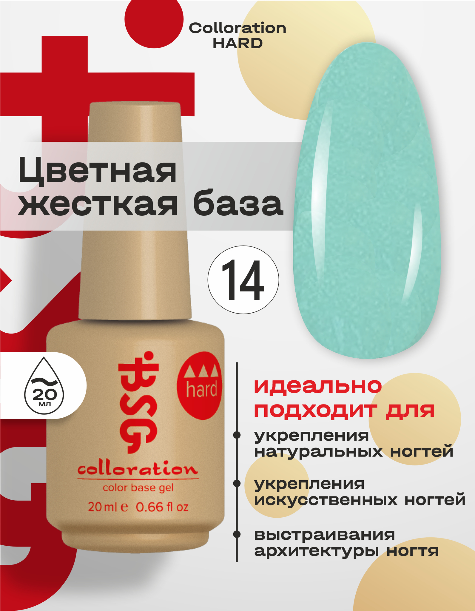 Цветная жесткая база Colloration Hard №14 - Нежный оттенок бирюзы с мерцающим шиммером (20 мл)