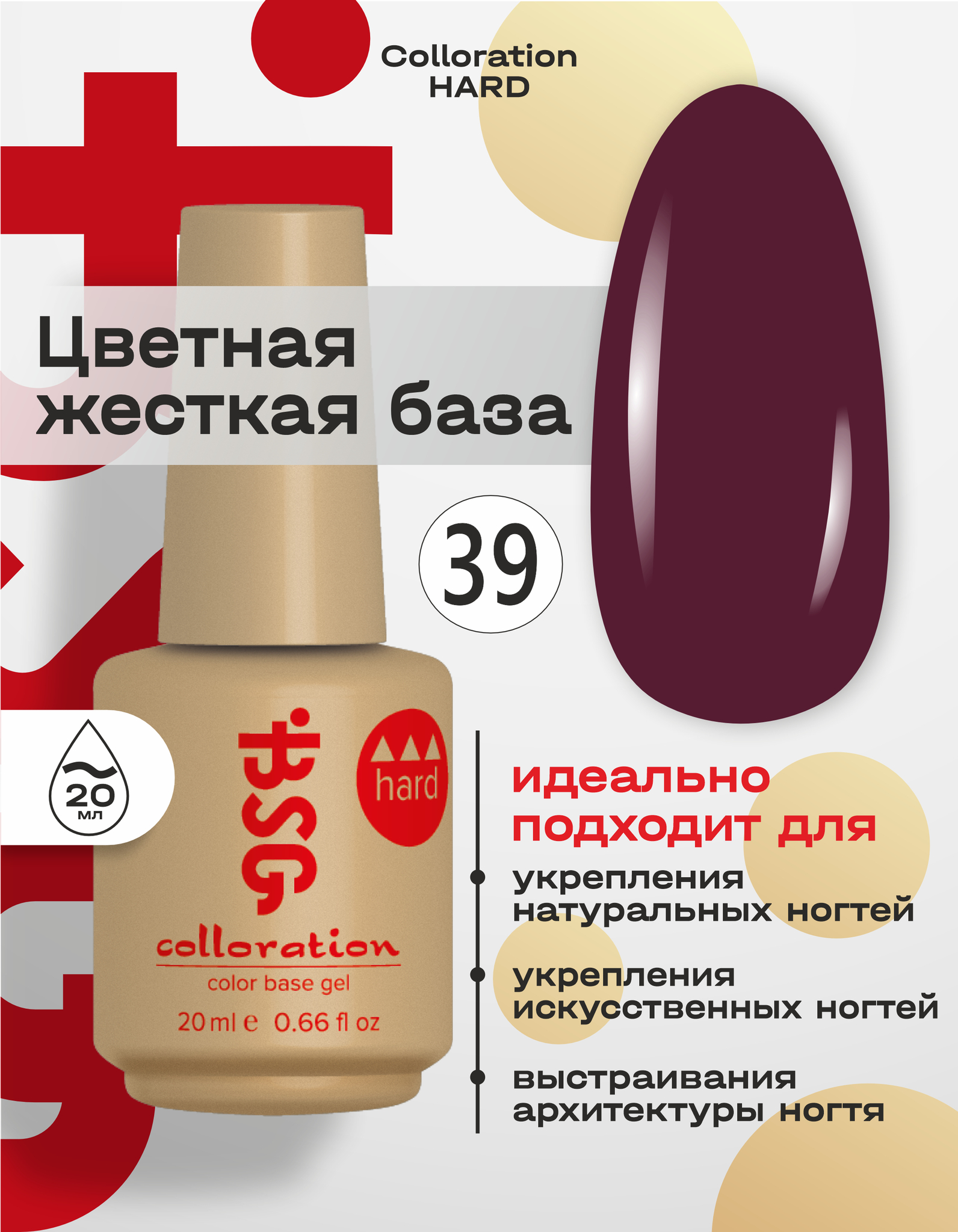 Цветная жесткая база Colloration Hard №39 - Бордово-сливовый оттенок (20 мл)